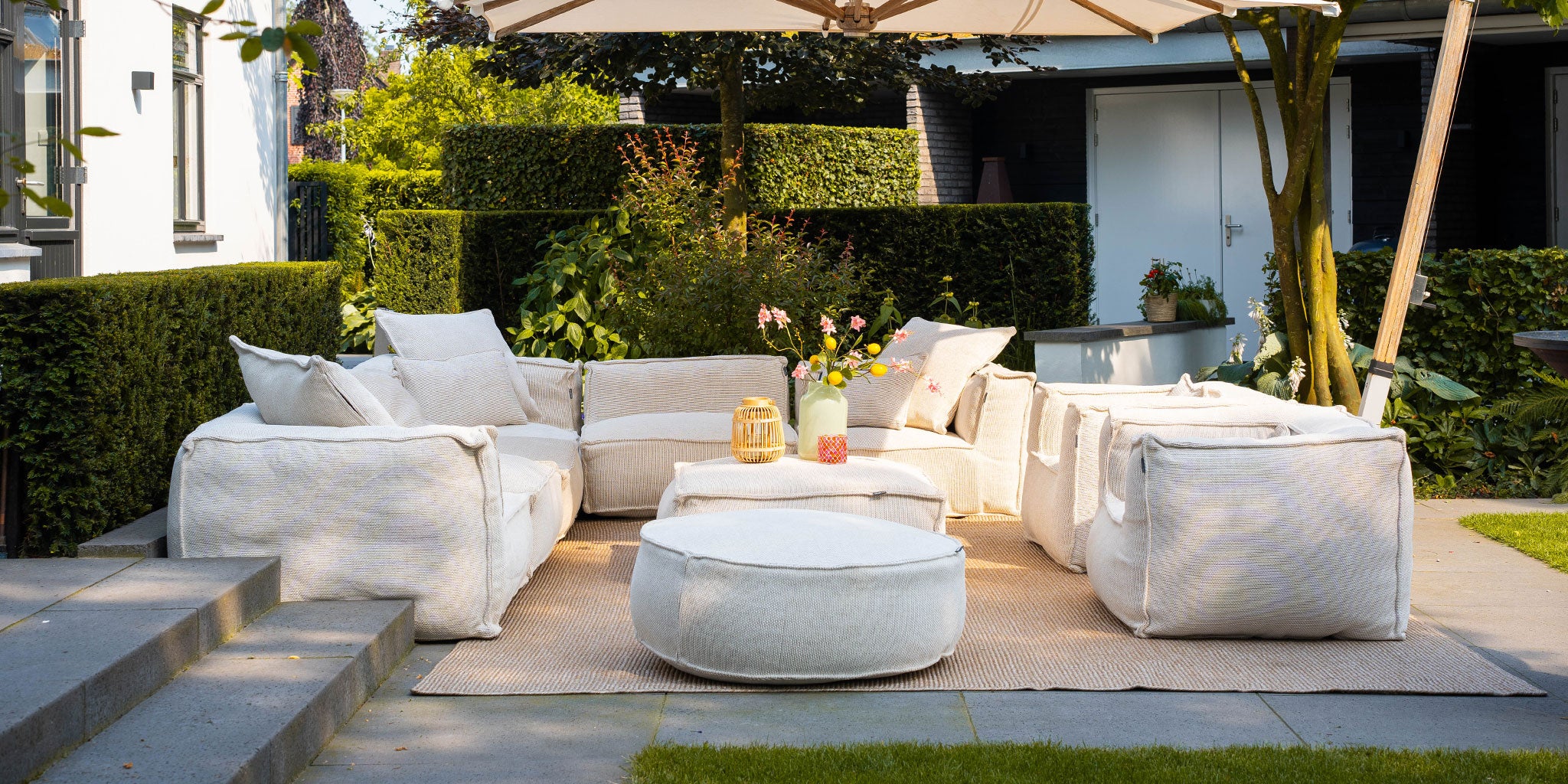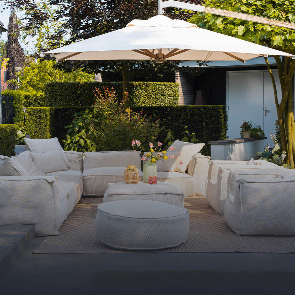 De loungesets kunnen het gehele jaar buiten blijven staan, dankzij de speciaal ontwikkelde stof. Bovendien zijn vlekken of vervuiling eenvoudig te verwijderen.